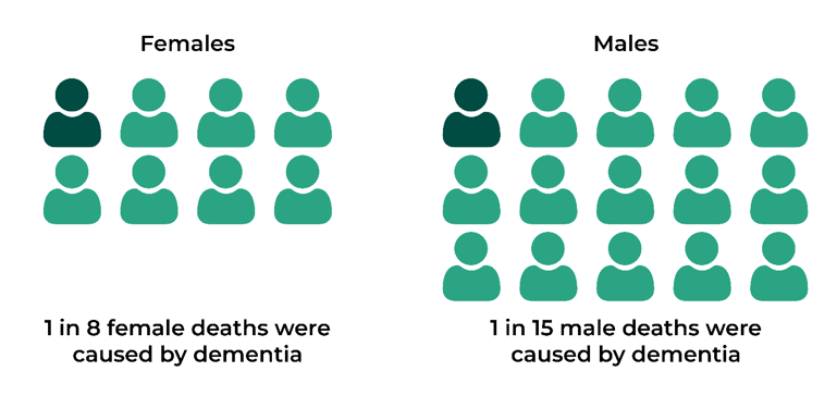 Dementia remains the leading cause of death for females in Wales, with almost twice as many women dying from dementia than men in 2021. Early research indicates that women are twice as likely to develop Alzheimer’s disease as men, which could be associated with changes to the female brain during menopause, together with social and cultural factors, however work continues to understand this. (https://www.nature.com/articles/s41591-025-03564-3)